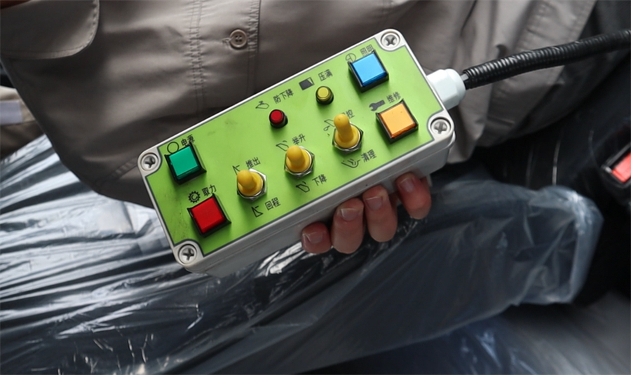 車輛兩側(cè)均設(shè)置緊急按鈕,配備高強度安全撐桿和防下降、推板感應(yīng)裝置,再次強化了誤操作的概念,在駕駛室也可遙控操作,安全便捷兩手抓!